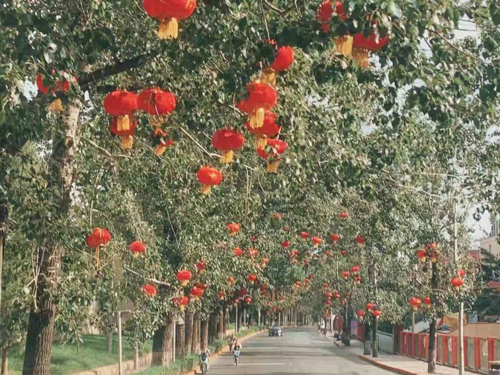 Red ribbon on pillars were scattered all around to celebrate the 70 years anniversary of the People’s Republic of China