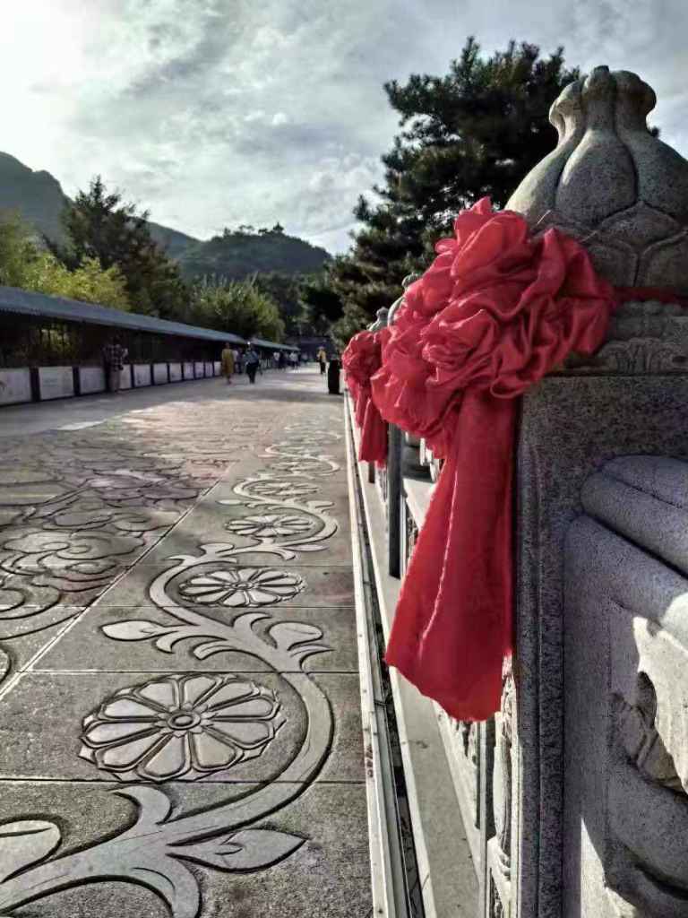 Partially embarrassed, partially concentrated on not messing anything up and unleashing the anger of god knows which mystical creature of that place, I started to perform the ritual. Placed my hands together in front of the Temple of Divine Light (灵光寺). Slowly moved them toward my forehead, my mouth and finally my heart, to then at last bow down in a sign of respect. We both turned to the right side and started to clockwise repeat the process until coming back facing the Lingguang pagoda. We then proceded with something that I would closely relate to the Muslim rituals of morning prayers on their mat in the direction of the Mecca of Medina. Kneeling to touch the soft platform to become one with god’s earth creation and afterwards standing up facing the sky as a token of admiration and reverence.